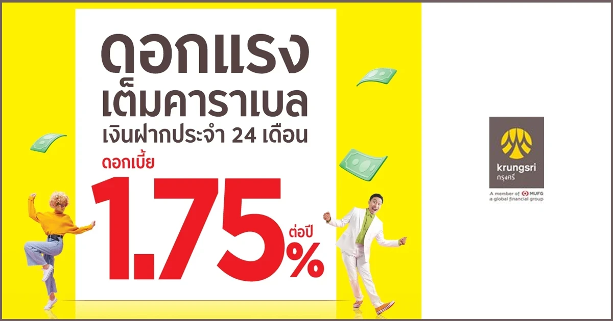 ดอกสูงปรี๊ด เงินเย็น ฝากยาว ยิ่งฝากนานดอกเบี้ยยิ่งสูง บัญชีเงินฝากประจำ 24 เดือน อัตราดอกเบี้ย 1.75% ต่อปี