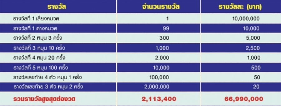 จำนวนรางวัลและเงินรางวัลต่อครั้ง ประกอบด้วย