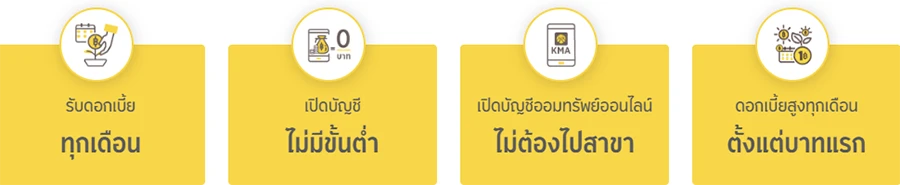 - สิทธิพิเศษนี้สำหรับลูกค้าที่เปิดบัญชีออมทรัพย์ มีแต่ได้ ออนไลน์ ผ่านทาง KMA krungsri app และมีธุรกรรมการโอนเงินเข้าบัญชีออมทรัพย์ มีแต่ได้ ออนไลน์ ในเดือนที่เปิดบัญชี ครั้งแรกขั้นต่ำ 200 บาทขึ้นไป ระหว่างวันที่ 1 กรกฎาคม 2566 – 31 ธันวาคม 2566 เท่านั้น