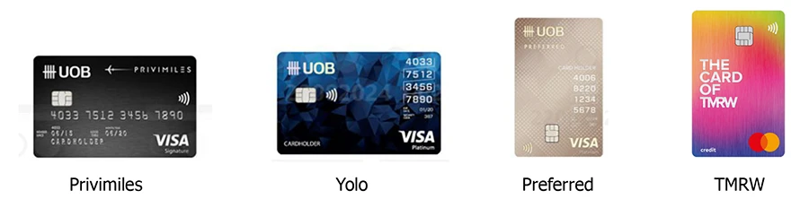 - รายการส่งเสริมการขายนี้ให้เฉพาะลูกค้าใหม่ที่ไม่เคยมีบัตรเครดิตยูโอบี บัตรเครดิต TMRW และบัตรเครดิตภายใต้แบรนด์ซิตี้ หรือเคยถือบัตรเครดิตยูโอบี บัตรเครดิต TMRW หรือบัตรเครดิตภายใต้แบรนด์ซิตี้ และได้ทําการปิดบัญชีบัตรฯ มาแล้วไม่น้อยกว่า 12 เดือนนับจากวันที่ปิดบัญชีบัตรฯ จนถึงวันที่สมัครบัตรฯ ใหม่