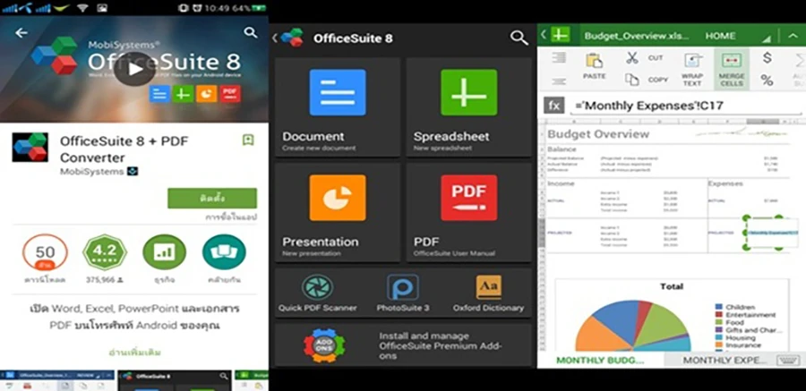 Office Suite8 เป็นแอปที่สามารถสร้างและแก้ไขเอกสาร ไม่ว่าจะเป็น Microsoft Word , Power Point, Excel, PDF ได้ไม่ว่าคุณจะอยู่ที่ไหน จะอยู่บนรถระหว่างการเดินทาง หรือกำลังจะต้องพรีเซนต์งานในอีกไม่กี่นาทีก็สามารถแก้ไขได้ทันท่วงที โดย Office Suite8 นั้นจะ Sync กับ Google Drive ให้คุณสามารถเก็บเอกสารไฟล์งาน และนำมาใช้ได้ทุกที่ โดยไม่ต้องพกพาข้อมูลที่เสี่ยงต่อการสูญหาย
