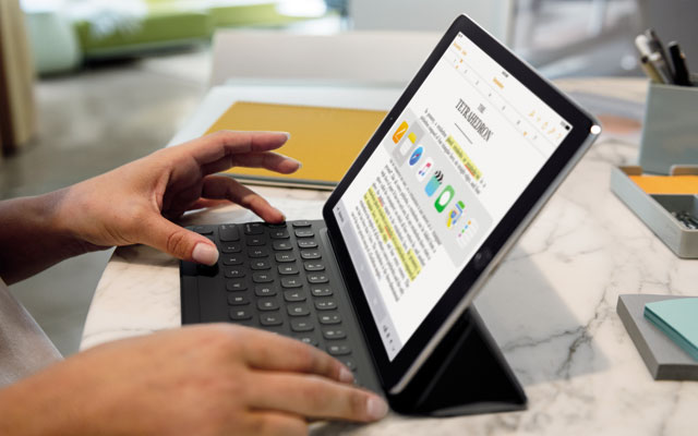 แท็บเล็ต Apple iPad Pro นั้นให้ความรู้สึกในการใช้งานแบบเดียวกับแล็ปท็อปเลยทีเดียว โดยมีทั้งในขนาดหน้าจอ 9.7 นิ้ว และ 12.9 นิ้ว มีหน่วยความจำภายในให้เลือกตั้งแต่ 32GB, 128GB และ 256GB ส่วน iPad Air 2 จะมีหน่วยความจำภายในให้เลือกเพียง 16GB และ 64GB ให้เลือกเท่านั้น