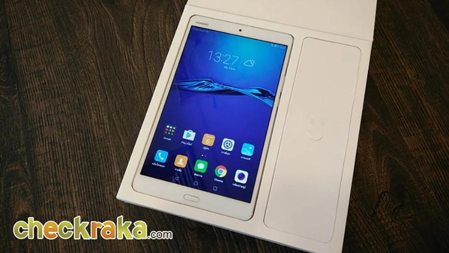 Huawei Mediapad M3 เป็นแท็ปเล็ตระดับพรีเมี่ยมรุ่นล่าสุดของ Huawei ที่ได้จับมือกับ Harman/kardon แบรนด์เครื่องเสียงชื่อดังระดับโลก มาพร้อม Design ที่หรูหราสวยงาม และวัสดุโลหะดูพรีเมี่ยม มีการตัดขอบแบบ Diamond Cut เพิ่มความหรูหราสวยงาม สเปคภายในก็สูงมากครับ เป็นตัวเลือกของแท็ปเล็ตระบบ Android ระดับต้นๆ เลย ซึ่งเหนือกว่าคู่แข่งในราคาเดียวกันทุกจุด จะแอบน่าเสียดายก็ตรง Huawei Mediapad M3 ไม่สามารถโทรออก-รับสายโดยการแนบหูสนทนาได้นะครับ เพราะรุ่นนี้ไม่มีลำโพงสนทนามาให้ แต่รองรับการโทรครับ (ต้องใช้ Small Talk)