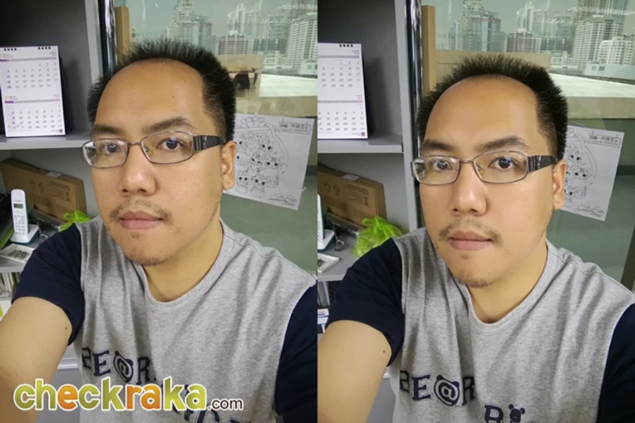 เปรียบเทียบระหว่างปิดฟังก์ชั่น Beauty Shot และเปิดระดับที่ 5 (สามารถปรับได้ 10 ระดับ)