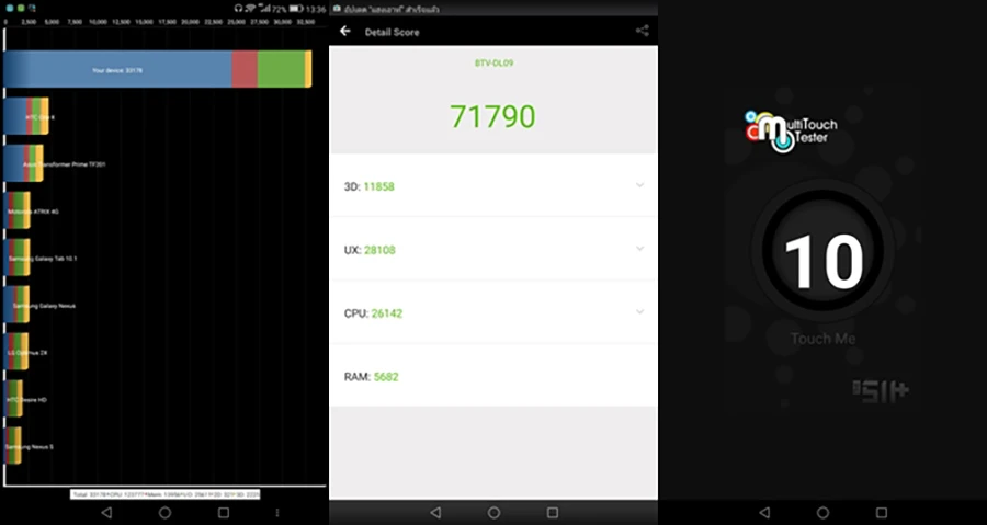 - ทดสอบด้วยแอปพลิเคชั่น AnTuTu Benchmark ทำไปได้ 71,790 คะแนน
