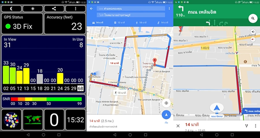 - ทดสอบสัญญาณ GPS จับสัญญาณได้อย่างรวดเร็วดี