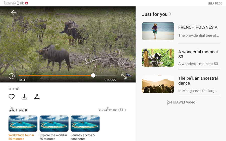 บนตัวเครื่องของ HUAWEI MatePad T8 นั้น มีการติดตั้ง HUAWEI Video มาให้ ซึ่งในนี้ก็จะมีคอนเท้นท์วิดีโอให้เลือกรับชมอย่างหลากหลาย ไม่ว่าจะเป็น ซีรีส์ ข่าว และคลิปวิดีโอไวรัลต่างๆ แม้ว่าจะยังดูไม่ค่อยสมบูรณ์เต็ม 100% แต่ถือว่าเป็นอีกหนึ่งทางเลือกที่ หัวเว่ย พยายามจัดหามาให้กับผู้ใช้งานทุกคน