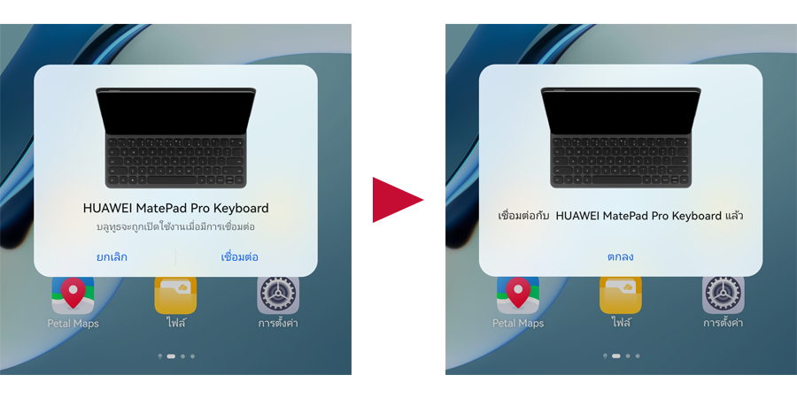 - ทดลองเชื่อมต่อใหม่อีกครั้ง ก็จะสามารถจับคู่แป้นพิมพ์กับแท็บเล็ตได้ตามปกติ