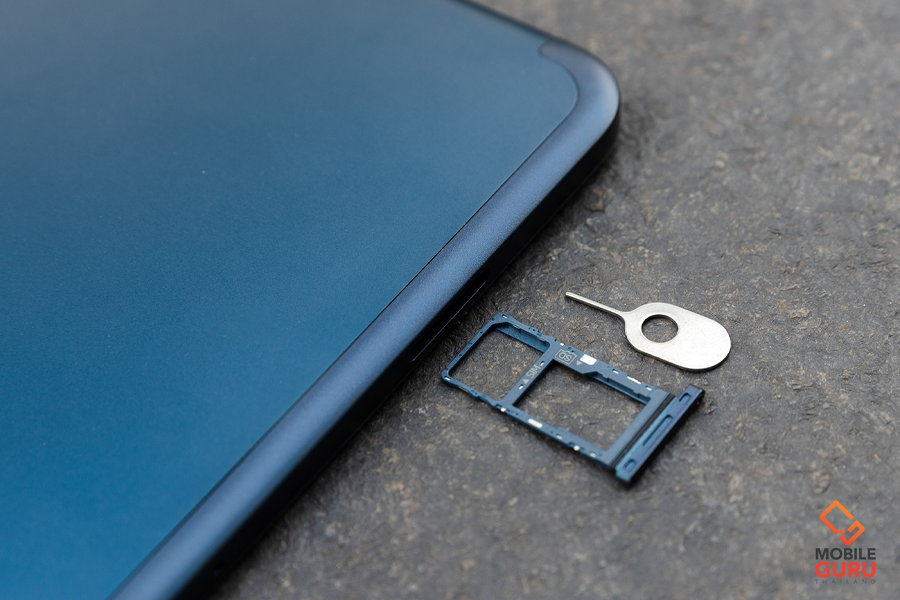 ด้านบนตัวเครื่อง มีปุ่มกดปรับระดับเสียงเพิ่ม-ลด (Volume), ไมค์ตัดเสียงรบกวนสองตำแหน่ง และช่องถาดซิมการ์ด 2 slot แบ่งเป็นช่องสำหรับใส่ซิมการ์ด เพื่อใช้งานดาต้า และช่องสำหรับ MicroSD Card รองรับสูงสุดที่ 512GB