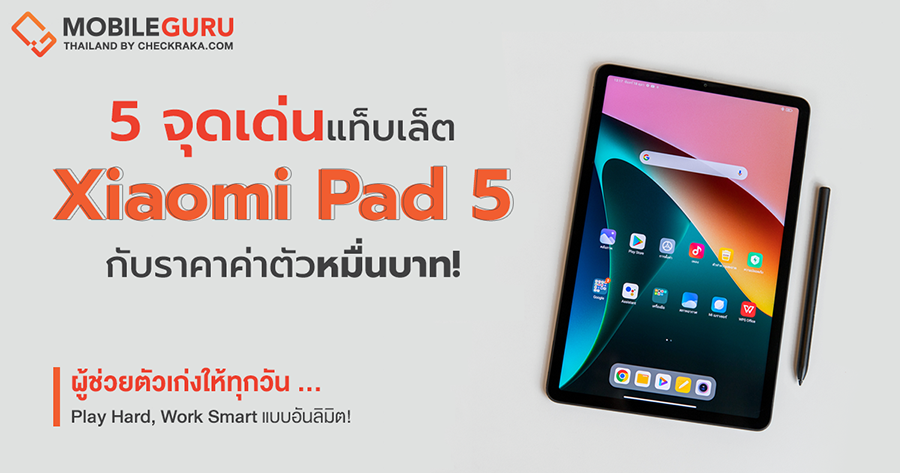 เริ่มกันด้วย Xiaomi Pad 5 ที่กระแสตั้งแต่เปิดตัวปีที่แล้วจนตอนนี้ก็ยังไม่ซา ด้วยดีไซน์หรูหราทันสมัย พร้อมหน้าจอ IPS ขนาด 11 นิ้ว ความคมชัดระดับ WQHD+ อัตรา Refresh Rate ที่ให้มาถึง 120Hz ทำให้นอกจากจะได้งานภาพที่สวยด้วยสีสันยังได้การแสดงผลที่สมูทลื่นไหล เหมาะกับการชมคอนเทนต์ ในส่วนของชิปเซ็ตเองก็ไม่ธรรมดา ด้วย Snapdragon 860 ให้การประมวลผลที่รวดเร็วและการตอบสนองที่ดีเยี่ยม เกมจะหนักแค่ไหนก็สามารถเล่นได้สบาย ๆ ไม่มีหน่วง นอกจากนี้ยังรองรับ Xiaomi Smart Pen ที่มาพร้อมคุณสมบัติความไวต่อแรงกด 4,096 เลเวล และ Xiaomi Pad Keyboard ให้ยืดหยุ่นการใช้งานกันได้หลากหลาย ไม่ว่าจะในบ้านหรือนอกสถานที่ สำหรับแบตเตอรี่ให้มาด้วยขนาดจุใจที่ 8,720 mAh เพียงพอต่อการใช้งานในหนึ่งวันได้อย่างสบาย ๆ เป็นแท็บเล็ตอีกตัวที่ครบ จบ ในเครื่องเดียวเลย