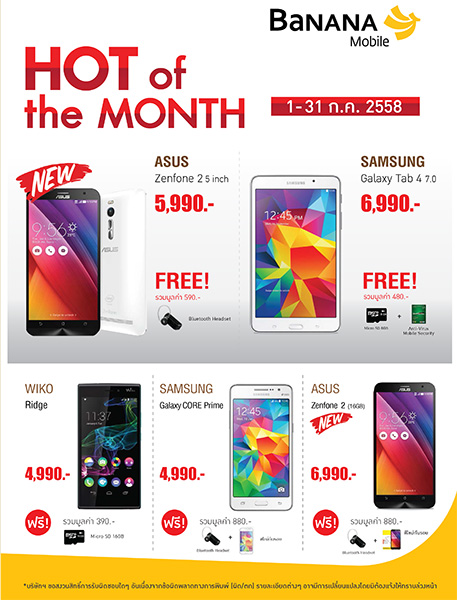 ห้ามพลาด !!! กับโปรโมชั่นสุดฮอต เป็นเจ้าของสินค้าไอทีในราคาพิเศษกว่าใคร และของสมนาคุณอีกมากมาย ที่ร้านบานาน่าไอที และบานาน่าโมบาย ทุกสาขา ทั่วประเทศ ตั้งแต่วันที่ 1 - 31 ก.ค. 58