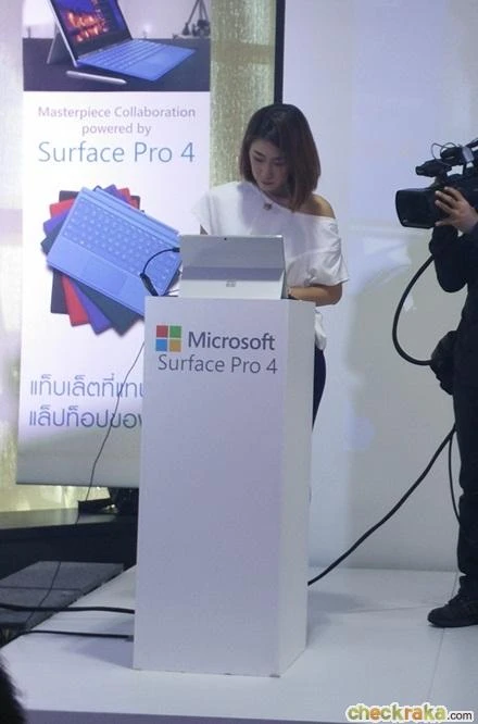 Surface Pro 4 เปิดตัวครั้งแรกในประเทศไทย ในงาน "The Masterpiece Collaboration powered by Surface Pro 4" จัดขึ้น ณ อาคาร E88 ศูนย์การค้า W-District โดยได้รับเกียรติจาก คุณบัณฑิต อึ้งรังษี วาทยากรระดับโลก นักพูดและนักเขียน และ คุณปอม-ธัชมาพรรณ จันทร์จำรัสแสง ศิลปินนักวาดภาพซึ่งมีผลงานเป็นที่รู้จักระดับสากลในชื่อ "Pomme Chan" มาร่วมสาธิตวิธีการใช้งาน Surface Pro 4 เพื่อสร้างสรรค์ศิลปะร่วมกัน โดยความสามารถทางด้านการอำนวยเพลงให้กับวงออร์เคสตร้าของคุณบัณฑิต อึ้งรังษีและลายเส้นที่สวยงามจากคุณปอม ธัชมาพรรณ จันทร์จำรัสแสง จะถูกรังสรรค์จากสัมผัสทางหู สู่สัมผัสทางตา ผ่าน Surface Pro 4 แท็บเล็ตรุ่นล่าสุดให้กับแขกผู้มาร่วมงานได้รับชมและรับฟัง