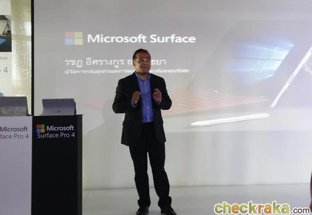 "เราตื่นเต้นมากที่จะได้แนะนำ Surface Pro 4 ให้กลุ่มลูกค้าและเหล่าแฟนคลับชาวไทย เพราะ Surface Pro 4 ถูกพัฒนามาจากความสำเร็จของ Surface Pro 3 ซึ่งเป็นที่ชื่นชอบและได้รับการรีวิวในแง่บวกจากหลายประเทศทั่วโลก เราดึงเอาทุกอย่างที่แฟน Surface ชื่นชอบ และพัฒนาดีไวซ์จากคำแนะนำของแฟนๆ ทำให้ Surface Pro 4 มีความสมบูรณ์อย่างมาก และด้วยรูปลักษณ์ ความคงทนของแบตเตอรี่ คีย์บอร์ดและ Surface Pen แบบใหม่ อีกทั้งยังมาพร้อมกับประสิทธิภาพในการทำงานบนวินโดวส์ 10 แพลทฟอร์มแห่งปีที่มีความปลอดภัยสูง เพิ่มศักยภาพให้แก่ผู้ใช้ได้อย่างยอดเยี่ยม ทำให้ Surface Pro 4 เป็นดีไวซ์ที่เปี่ยมด้วยคุณสมบัติรอบด้าน เมื่อบวกกับรูปลักษณ์ที่เป็นเอกลักษณ์และสวยงาม ถือได้ว่าครบไปทุกองค์ประกอบ สมกับที่แฟนทั่วโลกรอคอย" คุณรชฎ อิศรางกูร ณ อยุธยา ผู้จัดการกลุ่มธุรกิจและการตลาดวินโดวส์และเซอร์เฟซ บริษัท ไมโครซอฟท์ (ประเทศไทย) กล่าว