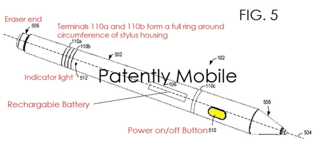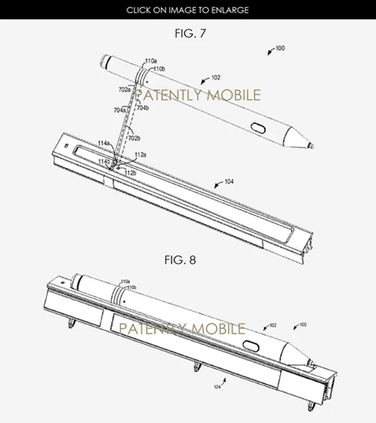 และหากสังเกตรูปที่ทาง Microsoft นำไปจดสิทธิบัตร เห็นได้ชัดว่าตรงแถบแม่เหล็กนั้นจะมีปุ่มเล็กๆ 3 - 4 ปุ่ม ส่วนตัวบริเวณปากกาจะมีวงรอบ 2 วง ซึ่งเมื่อประกบไว้ด้วยกันจะสัมผัสกันพอดีจึงคิดว่าน่าจะเป็นการชาร์จปากกาแบบไร้สายนั่นเอง