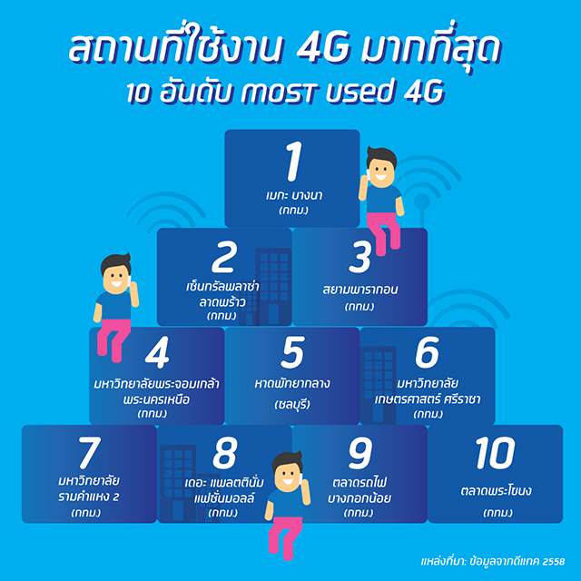 - 4G ตอบสนองความต้องการใช้งานอินเทอร์เน็ตบนมือถือ พร้อมทั้ง 4G ได้เร่งการใช้งานดาต้าแบบก้าวกระโดดในสังคมไทย และมีการใช้งานดาต้าบน 4G ด้วยจำนวนปริมาณดาต้าที่มากกว่าการใช้งาน 3G ทั้งในธุรกิจและชีวิตประจำวัน