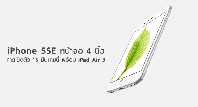 หลุดโฉม iPhone 5SE หน้าจอ 4 นิ้ว คาดเปิดตัว 15 มีนาคมนี้ พร้อม iPad Air 3