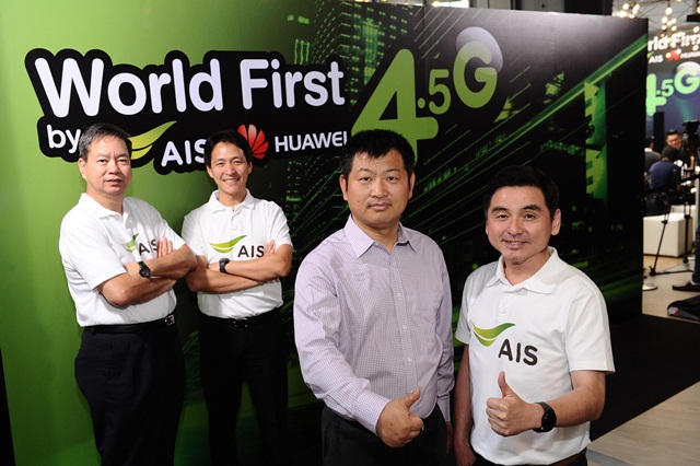 AIS โชว์ศักยภาพ ผู้นำตัวจริงด้านเครือข่ายดิจิทัลอันดับหนึ่งของประเทศ เปิดให้บริการ 4.5G เชิงพาณิชย์ รายแรกของโลก ใช้งานได้จริงแล้ว บนนวัตกรรมเครือข่ายที่ดีที่สุด ด้วยความเร็วสูงสุดถึง 1 Gbps ภายในเดือนเม.ย. นี้ ด้วยผลสำเร็จจากความร่วมมืออันเหนียวแน่นกับพันธมิตรระดับโลก "Huawei" ที่ร่วมคิดค้นและผสมผสานนวัตกรรมเครือข่ายอัจฉริยะเข้าด้วยกัน เพื่อมอบประสบการณ์ชีวิตดิจิทัลเหนือชั้นยิ่งกว่า ให้กับผู้บริโภคชาวไทย ได้สนุกกับบริการ HD วิดีโอ และแอปพลิเคชั่นโมบายอินเทอร์เน็ตล้ำสมัย อาทิ VR, Drone, IoT พร้อมเดินหน้าสร้างมาตรฐานใหม่ให้กับอุตสาหกรรมโทรคมนาคมของไทย ยกระดับความแข็งแกร่งทางด้านเทคโนโลยีให้กับประเทศชาติ และมุ่งสนับสนุนการเติบโตของเศรษฐกิจดิจิทัล ก้าวสู่ Smart Cities เต็มตัว
