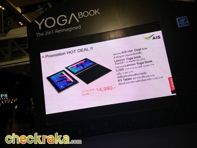 สำหรับราคาของ YOGA Book เวอร์ชั่น Android อยู่ที่ 19,990 บาท สมัครแพคเกจกับ AIS ลดทันที 5,000 บาท เหลือเพียง 14,990 บาทเท่านั้น โดยสมัครโปรโมชั่นแพ็คเกจ 4G Tablet 499 บาทหรือ 699 บาท พร้อมจ่ายค่าบริการล่วงหน้า 2,000 บาท สามารถหาซื้อได้แล้วครับทั่วประเทศ ส่วนเวอร์ชั่น Windows 10 จะวางจำหน่ายเดือนหน้า ในราคา 24,990 บาท ใครที่สนใจเวอร์ชั่น Windows 10 ก็อดใจรอกันหน่อยนะครับ