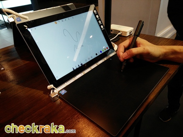 Lenovo จัดงาน YOGA Book Experience Day ณ ศูนย์การค้าสยามเซ็นเตอร์ ในวันที่ 26 - 27 พฤศจิกายนที่ผ่านมา ภายในงานได้เปิดตัว Yoga Book แท็บเล็ต 2 in 1 รุ่นใหม่ล่าสุดของ Lenovo มีทั้งระบบ Android และ Windows 10 เป็นครั้งแรกในประเทศไทย สัมผัสแรกรู้สึกบางและเบามากครับ น้ำหนักเพียงแค่ 690 กรัม มีขนาดและความบางพอๆ กับสมุดหนึ่งเล่ม คีย์บอร์ดเป็นแบบสัมผัส และเน้นใช้งานวาดเขียนผ่านปากกาบนคีย์บอร์ด โดยทาง Lenovo บอกว่าจะพัฒนาอย่างต่อเนื่อง มีสินค้าอีกหลายรุ่นที่จะเปิดตัวต่อไป รวมทั้งรุ่นที่มาพร้อมสเปคระดับสูงอีกด้วย ทำให้วางใจได้เลยว่าเป็นตระกูลที่จะมีการพัฒนาอีกยาวนานแน่นอน มีการวางให้เป็นสินค้าที่จะเป็นอนาคตของบริษัทที่มีแนวโน้มจะมาแทนที่ Laptop ทั่วไปในอนาคต