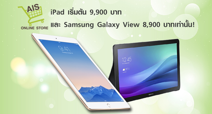 AIS Online Store จัดแคมเปญส่งท้ายปี ซื้อเครื่องเปล่า iPad เริ่มต้น 9,900 บาท และ Samsung Galaxy View ราคาเพียง 8,900 บาทเท่านั้น