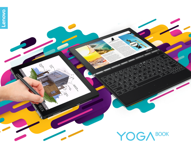 Lenovo Yoga Book แท็บเล็ต 2 in 1 มีทั้งระบบ Android และ Windows 10 มีขนาดและความบางพอๆ กับสมุดหนึ่งเล่ม คีย์บอร์ดเป็นแบบสัมผัส มีจุดเด่นตรงสามารถใช้งานวาดเขียนผ่านปากกาบนคีย์บอร์ด (หรือจะวาดบนหน้าจอก็ได้ แต่ต้องสลับไปใช้ปากกา Capacitive ปกตินะครับ) พลิกหน้าจอได้ 360 องศา บานพับแบบนาฬิกาซึ่งเป็นลิขสิทธิ์เฉพาะของ Lenovo และคีย์บอร์ดแบบสัมผัสเรียกว่า Create Pad ซึ่งเวลาพิมพ์จะมีแรงสั่นช่วยให้พิมพ์ง่ายขึ้น แถมรองรับปากกาที่คีย์บอร์ดเลยด้วย เหมาะกับการเขียนข้อความและวาดภาพมากๆ รองรับแรงกดสูงสุด 2,048 ระดับ
