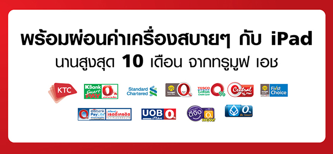 พร้อมผ่อนค่าเครื่องนานสูงสุด 10 เดือน กับบัตรเครดิตชั้นนำที่ร่วมรายการ