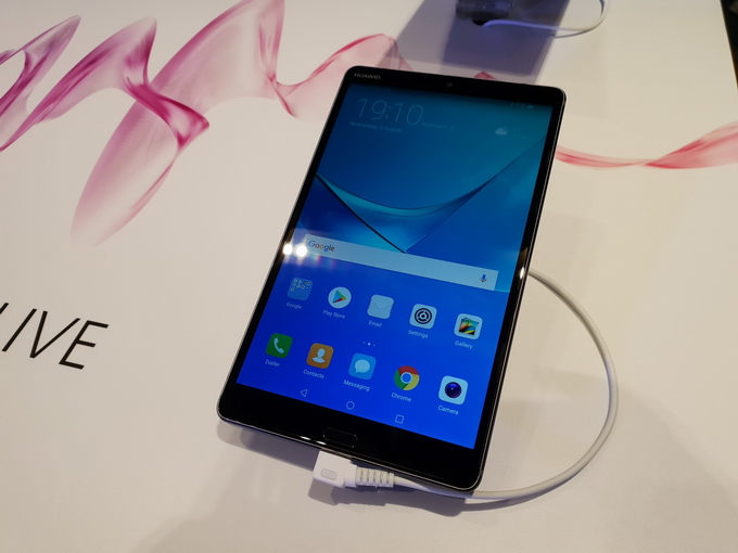 HUAWEI MediaPad M5 รองรับ 4G LTE-A (3CA) Cat12 600/150 Mbps, มีความบางเพียง 7.3 มม., หน้าจอ IPS ขนาด 8.4 นิ้ว ความละเอียด QHD (2K) 2560 x 1600 pixels, ทำงานบน Android 8.0 Oreo ครอบทับด้วย EMUI 8.0, ชิปเซ็ต HiSilicon Kirin 960, RAM 4GB, ROM 32GB รองรับ MicroSD, รองรับ Wi-Fi 802.11 a/b/g/n/ac, Bluetooth 4.2, USB Type-C, เซนเซอร์ Fingerprint (front-mounted), accelerometer, gyro, proximity, compass, แบตเตอรี่ความจุ 5,100 mAh รองรับชาร์จใว Fast battery charging, กล้องความละเอียด 13MP และกล้องหน้าความละเอียด 8MP, Stereo Speakers 2 ตัว