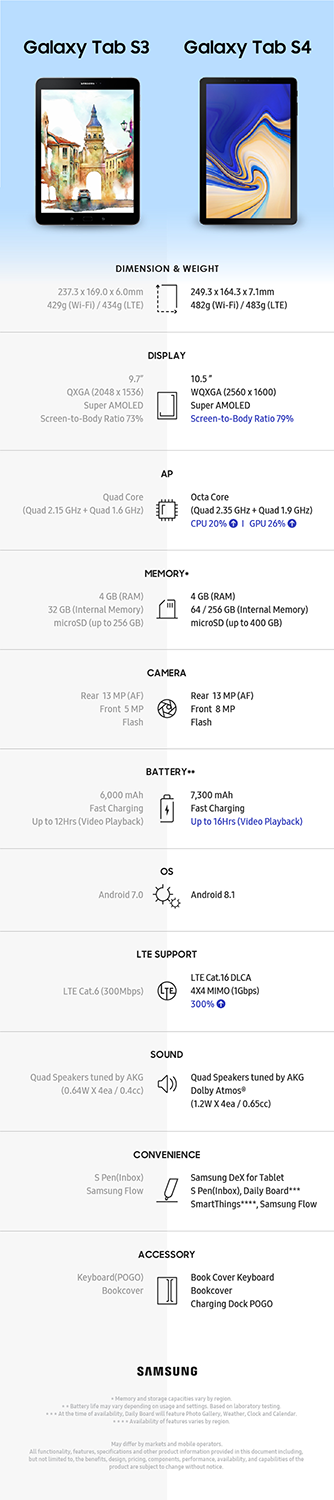 รายละเอียดสเปกตัวเครื่อง Samsung Galaxy Tab S4