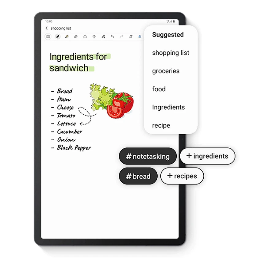 ยิ่งเทอมไหนเรียนเยอะ หลายวิชา มีเนื้อหาที่ต้องจดโน้ตมาก หากมี Galaxy Tab S7 FE ก็ไม่ต้องกังวล เพราะสามารถจัดระเบียบโน้ตให้เป็นหมวดหมู่ได้ด้วยการตั้งชื่อหัวข้อ ติดแท็ก หรือใช้งาน Auto Title & Tags ให้กับโน้ตนั้นๆ เพื่อเก็บบันทึกโน้ตได้อย่างเป็นระเบียบและง่ายต่อการค้นหา และยังสามารถเขียนข้อความหรือ key word ลงบนแถบการค้นหาเพื่อใช้แทนการพิมพ์ได้อีกด้วย