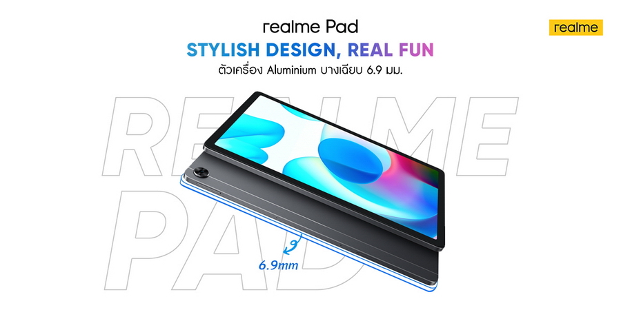 เพราะตระหนักดีว่า การจับถืออุปกรณ์ยังส่งผลต่ อประสบการณ์การใช้งานอย่างมาก ทำให้ realme ใส่ใจในทุกรายละเอียดของการผลิต โดยออกแบบให้ realme Pad บางเพียง 6.9 มิลลิเมตร และหนักเพียง 440 กรัมเท่านั้น จึงจับถนัดกระชับมือและไม่เมื่ อยล้าหากต้องยกถือเป็นเวลานาน ตัวเครื่องทำจากอลูมิเนียมอั ลลอยด์และใช้เทคโนโลยีการผลิตขั้ นสูง ด้วยการกลึงระบบ CNC แบบเดียวกับที่ใช้ในการเจี ยระไนเพชร ผสานการชุบผิวแบบอโนไดซ์และขั ดผิวด้วยการพ่นทราย ทำให้ได้ฝาหลังที่สวยงามแบบเมทั ลลิก มอบสัมผัสระดับพรีเมียม เรียกว่าถือออกไปใช้งานนอกบ้ านได้แบบเท่ ๆ ดูสวยงามหรูหรามีระดับสุด ๆ ไปเลย