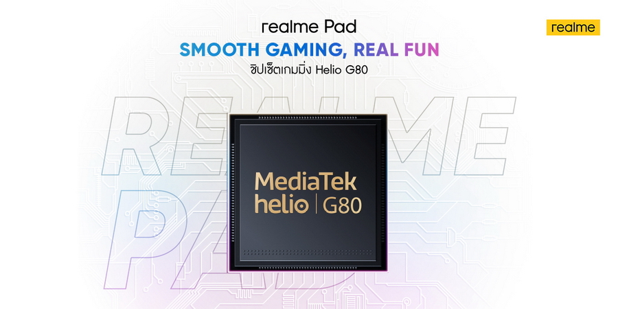 ด้วยซีพียู octa-core Helio G80 และการ์ดจอ Mali G52 ที่เป็นชุดชิปเซ็ตเกมมิ่ง ทำให้ realme Pad รองรับการประมวลผลของแอปพลิเคชั่ นต่าง ๆ ได้อย่างไหลลื่นและให้อั ตราเฟรมเรตที่เสถียรยิ่งขึ้นทั้ งในการเล่นเกมและการดูคอนเทนต์ ทุกรูปแบบ