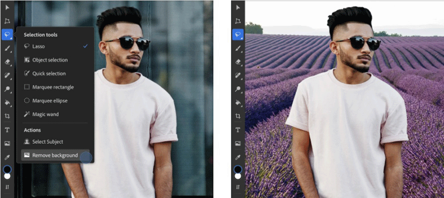 หนึ่งในเครื่องมือที่แปลกใหม่มากที่สุดก็คือ “การลบแบ็กกราวนด์ของภาพถ่าย” ซึ่งช่วยให้ผู้ใช้สามารถทำสิ่งต่างๆ เช่น ตัดและย้ายวัตถุไปใส่ไว้ในภาพอื่น หรือเปลี่ยนแบ็กกราวนด์ตัวเองด้วยฉากอื่น เป็นต้น Photoshop ขับเคลื่อนผลลัพธ์ที่มีคุณภาพสูงสุดด้วยการผสานรวมเทคโนโลยี Select Subject เข้ากับ Layer Masking เพื่อให้ผู้ใช้สามารถลบแบ็กกราวนด์ออกจากภาพได้อย่างเรียบเนียน โดยไม่มีการเปลี่ยนแปลงพิกเซลต้นฉบับของภาพ