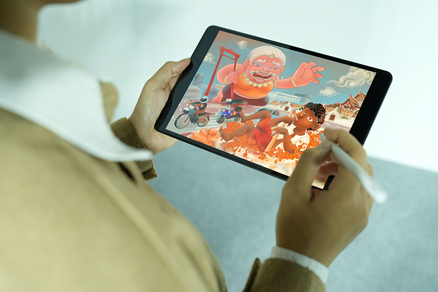 2. เสกงานชิ้นโบว์แดงด้วยเทคโนโลยีสุดล้ำและความคมชัดจัดจ้านของสีบนแท็บเล็ต