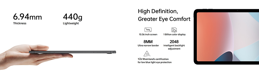 พร้อมเพิ่ม Productivity ที่ตอบโจทย์ทั้งการทำงานและความบันเทิงในเครื่องเดียว OPPO Pad Air ยังมาพร้อมหน้าจอถนอมสายตาขนาด 10.36" ความละเอียดสูงสุดถึง 2K ทำให้สามารถเพลิดเพลินไปกับหน้าจอขนาดใหญ่ได้ทุกที่ทุกเวลา นอกจากนี้ยังมีลำโพงสเตอริโอ 4 ตัว ระบบ Dolby Atmos มอบเสียงที่คมชัดสมจริงเต็มไปด้วยรายละเอียดเสียงแบบ 3D ที่นอกจากจะทำให้ได้ดูหนัง ฟังเพลงได้อย่างเพลิดเพลินแล้ว ยังใช้ในการประชุมหรือเรียนออนไลน์ได้เป็นอย่างดี โดย OPPO Pad Air มาในสีเทา Fog Gray ดูดีมีสไตล์
