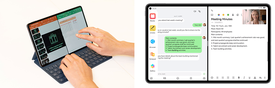 สำหรับคนที่เวลาเป็นสิ่งมีค่าอย่างนักธุรกิจที่คิวรัดตัวและคนวัยทำงานที่ต้องทำงานให้เสร็จทันตามกำหนด สกิลหลักที่จำเป็นต้องมีคือการ Manage ซึ่งจะดีกว่าไหม ถ้ามีดีไวซ์เจ๋งๆ ที่สามารถช่วยประมวลผลหลายโปรแกรมในเวลาเดียวกันก็จะยิ่งทุ่นแรงและเวลาได้มากขึ้น ซึ่งในเรื่องนี้ HUAWEI MatePad Pro 11-inch พร้อมซัพพอร์ตด้วยฟีเจอร์ App Multiplier สามารถเปิดหน้าแอปฯ เพื่อดูข้อมูลประกอบการทำงานได้พร้อมกันแบบสองหน้าต่าง อย่าง WPS Office แอปฯ สารพัดประโยชน์ของงานสายออฟฟิศ ที่ช่วยให้เราจัดการได้อยู่หมัดทั้งเอกสาร ทำพรีเซนเทชัน คำนวณตัวเลขบัญชี และยังมีฟีเจอร์ Multi-Window สำหรับจัดระเบียบหน้าต่างลอยเพื่อการทำงานได้อย่างรวดเร็วเป็นระบบ เก็บซ่อนหน้าต่างลอยได้สูงสุดถึง 10 หน้าต่าง และสามารถเปิดใช้งาน 4 แอปพลิเคชันพร้อมกันได้