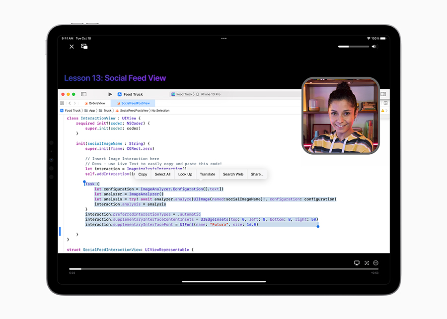 ตอนนี้คุณสมบัติข้อความในภาพสามารถตรวจจับข้อความในวิดีโอได้แล้วในทุกส่วนบนระบบโดยใช้ระบบอัจฉริยะบนอุปกรณ์ ทำให้โต้ตอบกับข้อความในเฟรมวิดีโอที่หยุดพักชั่วคราวได้อย่างสมบูรณ์แบบ เพียงแตะบนวิดีโอครั้งเดียว ผู้ใช้ก็สามารถคัดลอกและวาง แปลภาษา แปลงสกุลเงิน และทำสิ่งต่างๆ อีกมากมายได้อย่างรวดเร็ว