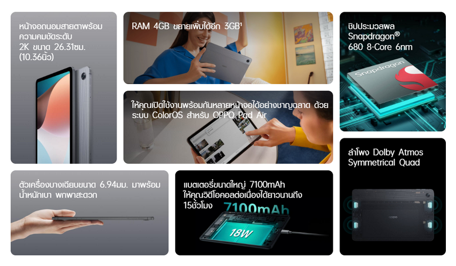 OPPO Pad Air แท็บเล็ตรุ่นแรกจากออปโป้ มาพร้อมดีไซน์บาง โฉบเฉี่ยว สนุกได้ไม่จำกัด มาพร้อมราคาใหม่เพียง 8,999 บาท จากราคาปกติ 9,999 บาท ตั้งแต่วันที่ 20 กุมภาพันธ์ 2566 เป็นต้นไป