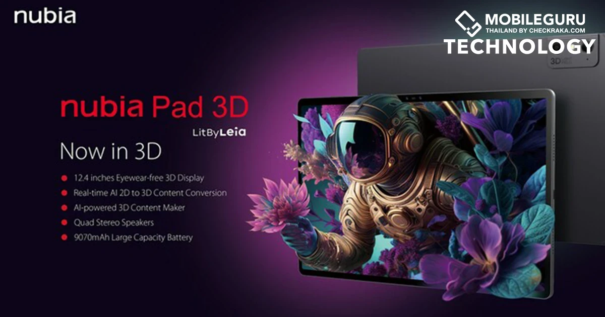 แซดทีอี คอร์ปอเรชั่น (ZTE Corporation) ร่วมกับเลอา อิงค์ (Leia Inc.) ผู้พัฒนาเทคโนโลยีเอไอ 3 มิติชั้นนำของโลก เปิดตัวแท็บเล็ตเอไอ 3 มิติรุ่นแรกของโลก "นูเบีย แพด ทรีดี" (Nubia Pad 3D)