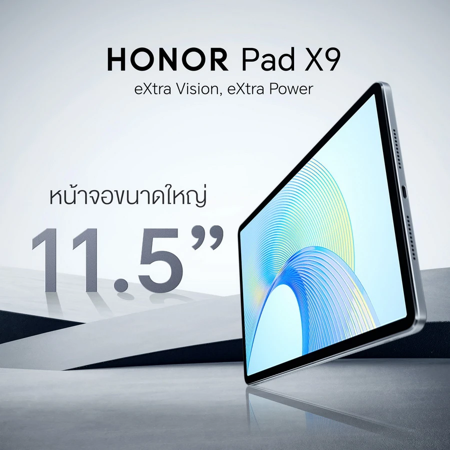 ออเนอร์ (HONOR) ผู้ให้บริการอุปกรณ์อัจฉริยะชั้นนำระดับโลก เปิดตัวแท็บเล็ตดีไซน์พรีเมียมรุ่นล่าสุด HONOR Pad X9 LTE เผยฟังก์ชันครบ ใส่ซิมได้ ตอบโจทย์ทั้งวัยเรียนและวัยทำงานด้วยสเป็กที่ อัดแน่น สะท้อนคอนเซปต์ eXtra Vision, eXtra Power เปิดตัวด้วยราคาเพียง 7,499 บาท จัดเต็มหน้าจอใหญ่ 11.5 นิ้ว แต่พกพาง่ายด้วยน้ำหนักเพียง 495 กรัม และความบางเพียง 6.9 มิลลิเมตร โดดเด่นด้วยระบบลำโพง 6 ตัว ผสานเทคโนโลยี HONOR Histen พร้อมรองรับการใช้งานอย่างลื่นไหลไม่มีสะดุดด้วยความจุถึง 128GB ยกระดับประสบการณ์ความบันเทิงและการใช้งาน สอดรับเทรนด์ที่เปลี่ยนไปในปัจจุบันอย่างการ Work & Learn From Anywhere วางจำหน่ายพร้อมกันทั่วประเทศไทยให้แฟนๆ HONOR ได้ดื่มด่ำไปกับประสบการณ์ครบทุกไลฟ์สไตล์ของแท็บเล็ตรุ่นใหม่ได้แล้วตั้งแต่วันนี้