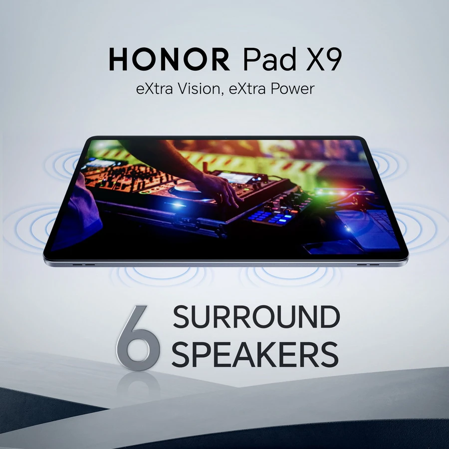 อีกหนึ่งเทคโนโลยีที่น่าจับตามองสำหรับ HONOR Pad X9 LTE คือการมาพร้อมลำโพงสเตอริโอที่มากถึง 6 ตัว มอบประสบการณ์ทั้งฟังเพลง รับชมวิดีโอ ภาพยนต์ หรือแม้แต่ใช้เรียนและประชุมออนไลน์ได้อย่างเหนือระดับจากระบบเสียงทรงพลังที่กังวานอย่างมีมิติ 360 องศา อีกทั้งผู้ใช้งานยังสามารถปรับระดับเสียงสูงและทุ้มต่ำ รวมถึงเอฟเฟคหลากหลายตามความต้องการ รวมถึงยังผสานเทคโนโลยีล้ำสมัย อย่าง HONOR Histen และเทคโนโลยี Vocal Enhancement ที่ช่วยดักจับเสียงพูดให้คมชัดและโดดเด่ดโดยตัดเสียงรบกวนรอบข้าง ทำให้ผู้ใช้งานสามารถรับฟังเสียงได้อย่างมีประสิทธิภาพ