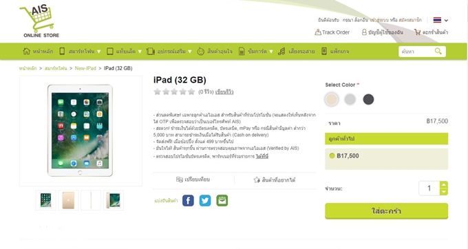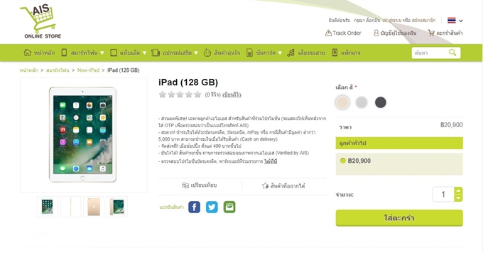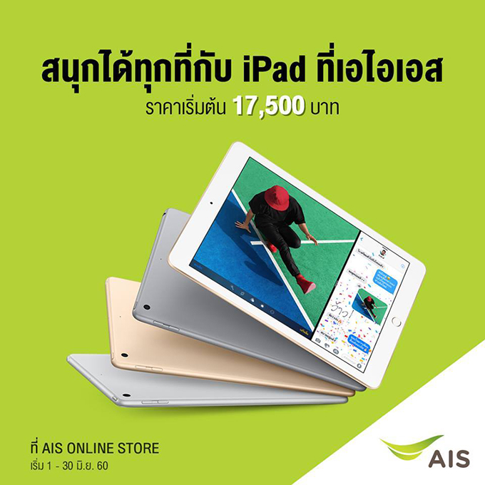 เอไอเอส จัดโปรโมชั่นพิเศษเพื่อให้ลูกค้าของ AIS ได้รับประสบการณ์สุดล้ำกว่าที่เคยกับ iPad ในราคาเริ่มต้นเพียง 17,500 บาท เท่านั้นยังไม่พอ มอบความสะดวกสบาย สามารถเลือกชำระเงินด้วยบัตรเครดิต, บัตรเดบิต หรือ mPay ก็ได้ แถมยังมีโปรโมชั่นรับเครดิตเงินคืน เมื่อจ่ายผ่านบัตรเครดิตที่ร่วมรายการ (ตรวจสอบโปรโมชั่นบัตรเครดิตที่ร่วมรายการ)